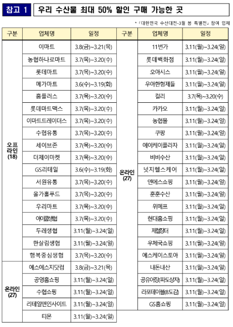 대한민국 수산대전 : 오프라인, 온라인 참여 업체 행사기간 확인하기